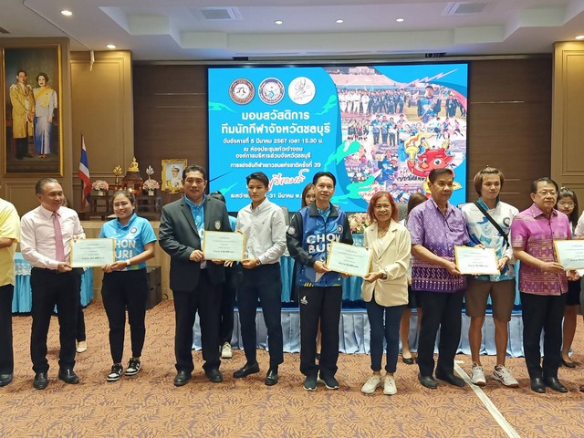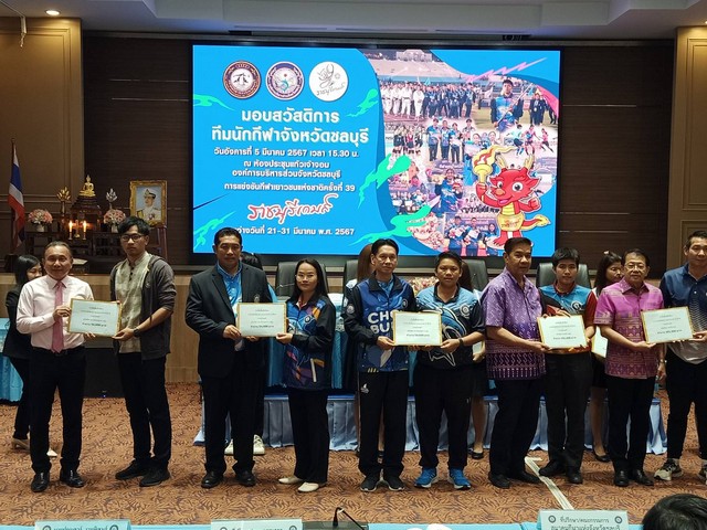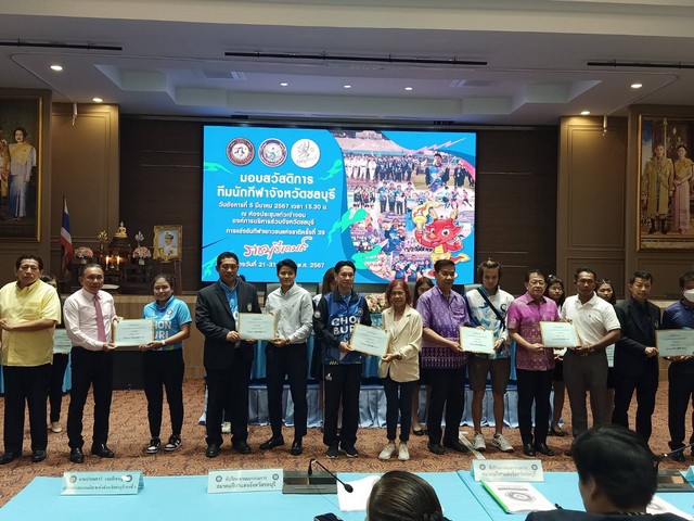 ชลบุรี # รองผู้ว่าฯชลบุรี พร้อมด้วยนายกสมาคมกีฬาแห่งจังหวัดชลบุรีและคณะมอบเงินสวัสดิการให้กับคณะนักกีฬาชลบุรีเพื่อเข้าร่วมการแข่งขันกีฬาเยาวชนแห่งชาติ ครั้งที่39 ประจำปี 2567 “ราชบุรีเกมส์ ”