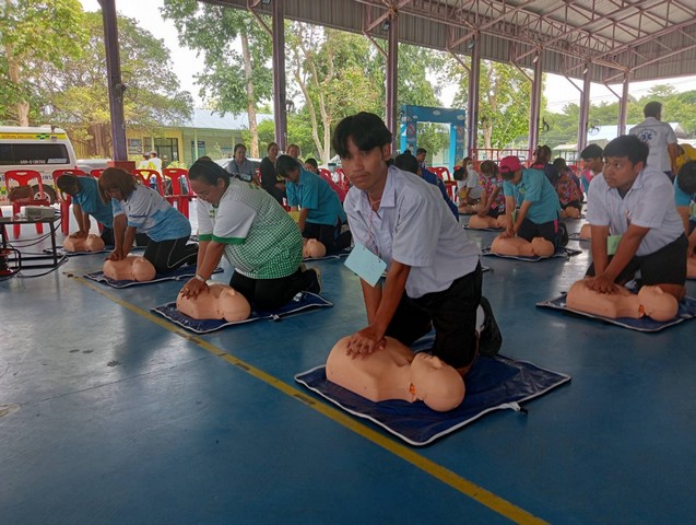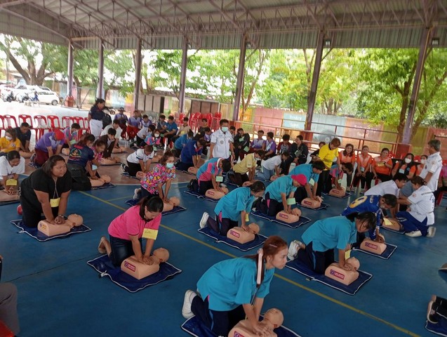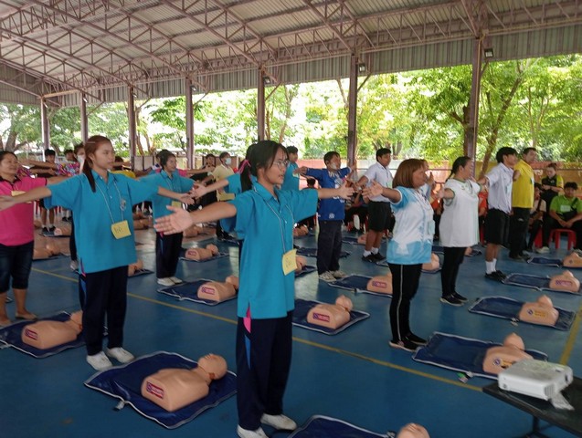 และสามารถทำพีซีอาร์ช่วยเหลือชีวิตคนอื่นได้ โดยมีวัตถุประสงค์ในการจัดอบรมในครั้งนี้ให้กับคุณครูและนักเรียนเพื่อให้ผู้ที่เข้ารับการอบรมมีความเข้าใจและสามารถบอกระดับความรุนแรงของอาการผู้ป่วยฉุกเฉิน และ สามารถแจ้งเหตุเจ็บป่วยฉุกเฉินได้โดยโทร แจ้ง1669 ได้ก่อนการอบรมในครั้งนี้ ทางคณะวิทยากรได้สอบถามนักเรียนว่าเราต้องปั๊มหัวใจหรือ CPR เมื่อผู้ป่วยมีอาการอย่างไร ผู้ที่เข้ารับการอบรมต่างพากันตอบคำถาม เช่น ตกตึก จมน้ำ หยุดหายใจ สำลักควัน โดยทางวิทยากรบอกต่อว่าการที่เราต้องช่วย CPR ต่อเมื่อผู้ป่วยมี ภาวะหัวใจหยุดเต้น หรือหยุดหายใจ ซึ่งการช่วยฟื้นชีพขั้นพื้นฐาน เป็นการปฏิบัติการเพื่อช่วยคนหัวใจหยุดเต้นหรือคนที่หยุดหายใจอย่างกะทันหันโดยไม่ต้องใช้เครื่องทางการแพทย์แต่อย่างใด